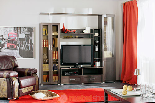 Яркая и современная стенка-гостиная Флай несомненно облагородит Ваш дом и сделает его по-особенному уютным.Легкая и воздушная (флай в переводе «полет»), компактная, но вместе с тем функциональная стенка Флай легко спрячет много нужных и даже ненужных вещей.На многочисленных открытых и закрытых полках можно разместить книги, посуду, сувениры, аксессуары для дома, технику и многое другое. В специальную нишу размером 1350 х 510 мм отлично поместится телевизор с большой диагональю. К достоинствам стенки также можно отнести подсветку витрин, никелевые ручки и металлизированные ножки.Стенка-гостиная Флай может быть изготовлена в левом или правом исполнении (определяется по самому высокому шкафу); габариты стенки - длина 2200 мм, глубина 420/500 мм, высота 2250 мм; возможные цвета - «венге» или «дуб беленый»; материалы - корпус ЛДСП, фасады рамка МДФ-профиль, полки - ЛДСП и стекло.